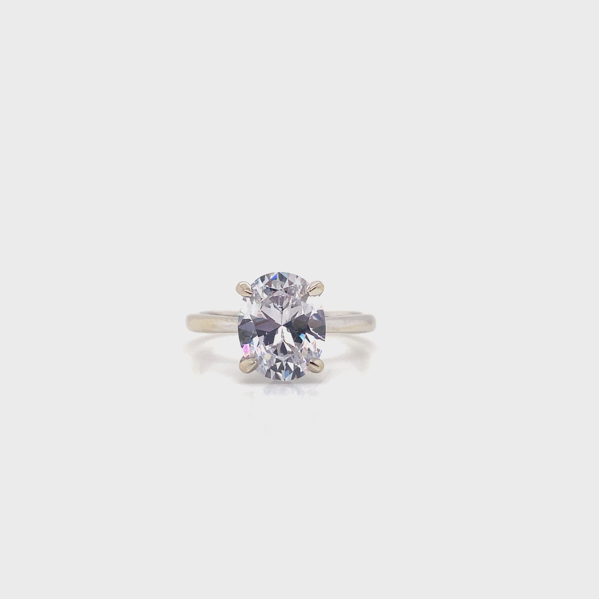 Elegant 14K white gold solitaire engagement ring with a stunning 11x9mm center stone, perfect for a timeless and sophisticated proposal.