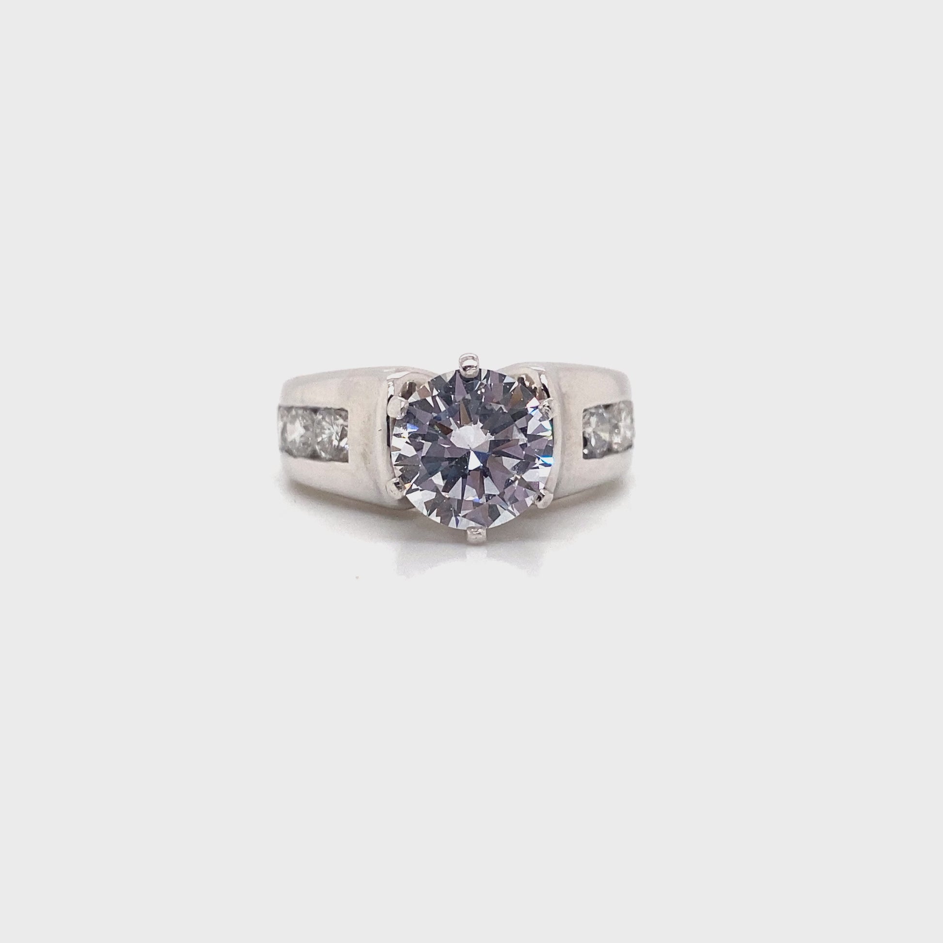 14K WHITE GOLD CZ CENTER DIAMOND ACCENT CHANNEL SET RING 1.25 CT
