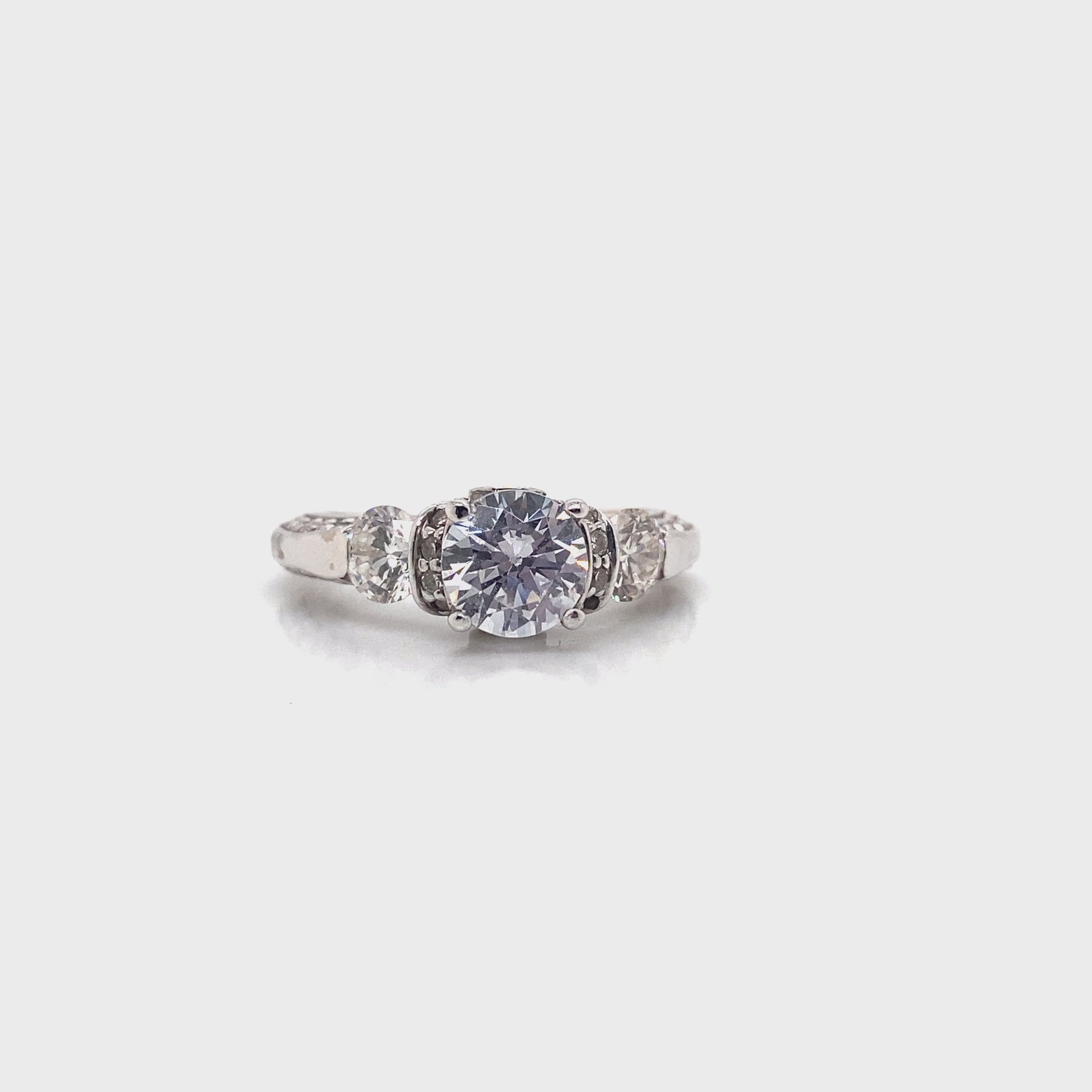 14K WHITE GOLD CZ CENTER DIAMOND ACCENT THREE STONE ENGAGEMENT RING