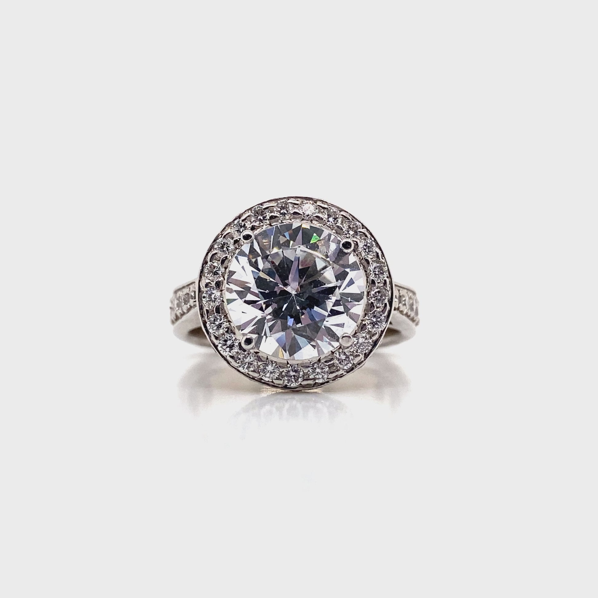 14K WHITE GOLD CZ CENTER DIAMOND HALO RING WITH SQUARE SHANK