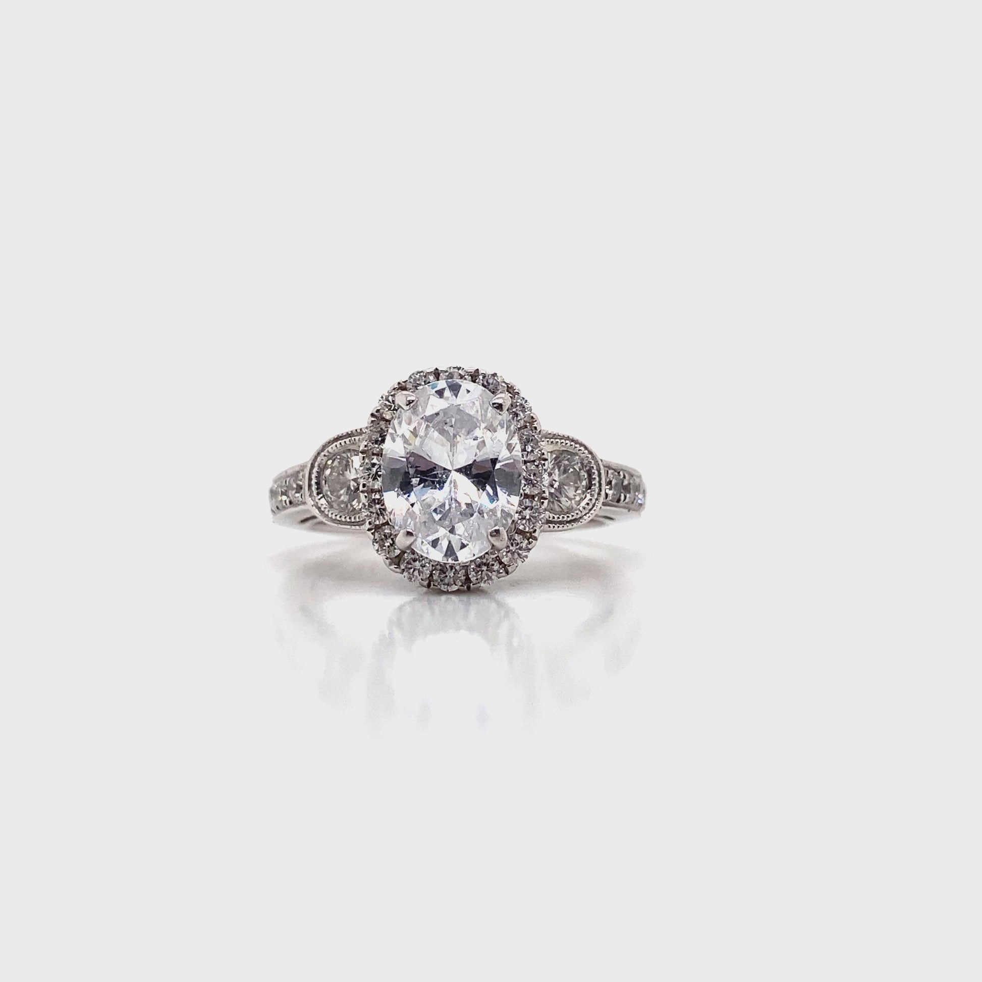 Elegant 14K white gold engagement ring with a .75 CT center stone and stunning halo design. Perfect for a timeless, sophisticated proposal.