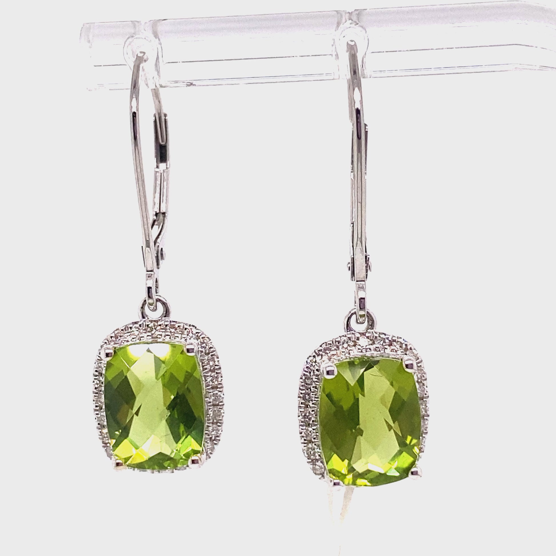 Enhance your elegance with these Peridot and Diamond earrings. Featuring a vibrant 4.60 TW peridot and 48 diamonds totaling 0.288 TW, they add timeless sparkle to any occasion.