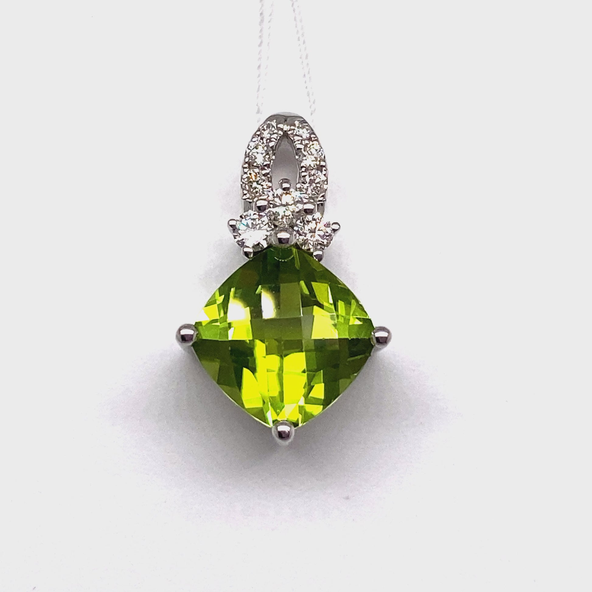 Explore the allure of our 2.73-carat Peridot, enhanced by 9 diamonds totaling 0.164 carats. A unique, elegant piece for any collection or special occasion.