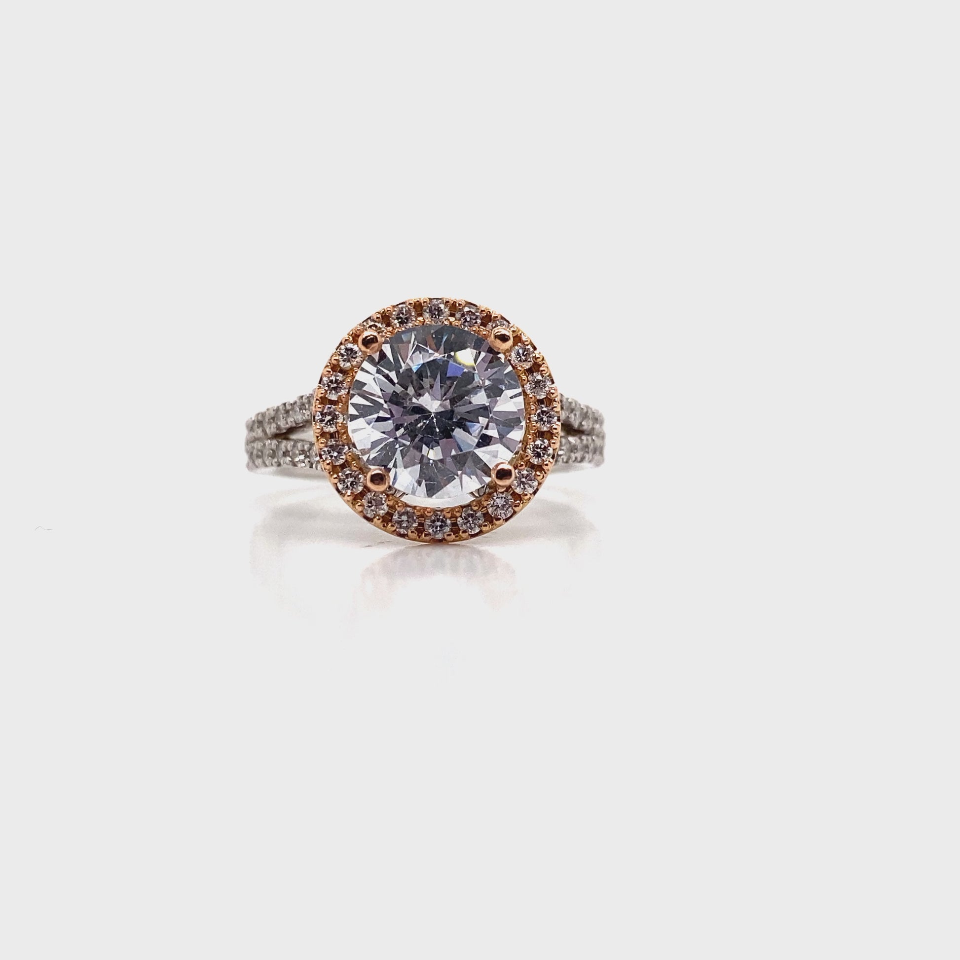14K WHITE GOLD RING WITH ROSE GOLD HALO & CZ CENTER, DIAMOND ACCENTS