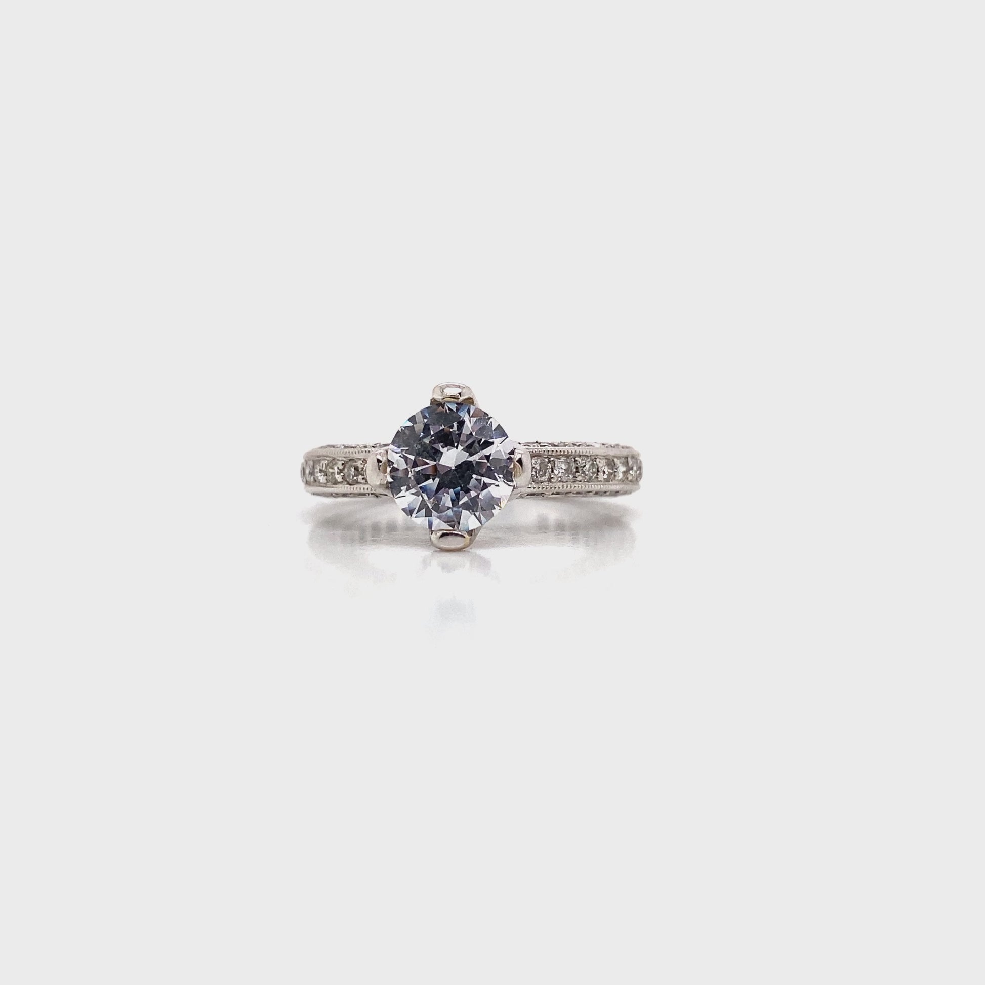 Elegant 18K white gold engagement ring with 1.10 CT total accent diamonds and a stunning center stone. Perfect blend of luxury and affordability.