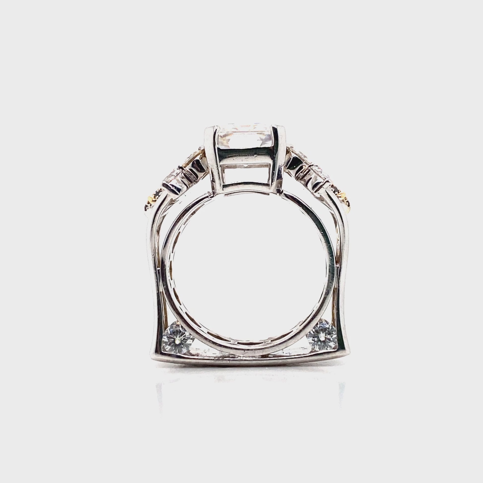 The Betty is a dazzling tribute to nature’s most precious architect—the honeybee. Meticulously handcrafted in rich 14K two-tone gold, this custom-designed masterpiece features an intricately sculpted honeycomb pattern in warm yellow gold, nestled within sleek white gold cathedral-style shoulders. A sparkling diamond center is flanked by delicate side details, including a beautifully formed bee, complete with marquise-cut wings and a round diamond body, symbolizing harmony, hard work, and beauty.