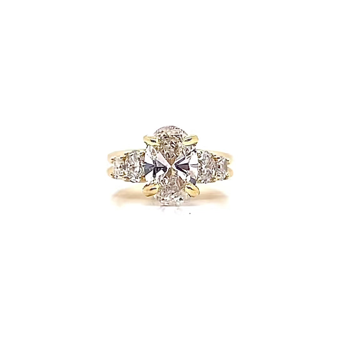 Graceful and radiant, The Christine is a custom-designed five-stone ring that captures timeless romance with bold sophistication. Set in luminous yellow gold, the design features a stunning oval-cut center diamond flanked by four matching oval side stones, creating a balanced and harmonious silhouette. Tapered accents along the band add sparkle and depth, while the warm gold setting brings out the brilliance of each diamond. The Christine is a refined yet statement-making piece, perfect for those who appreciate classic beauty with a touch of grandeur.