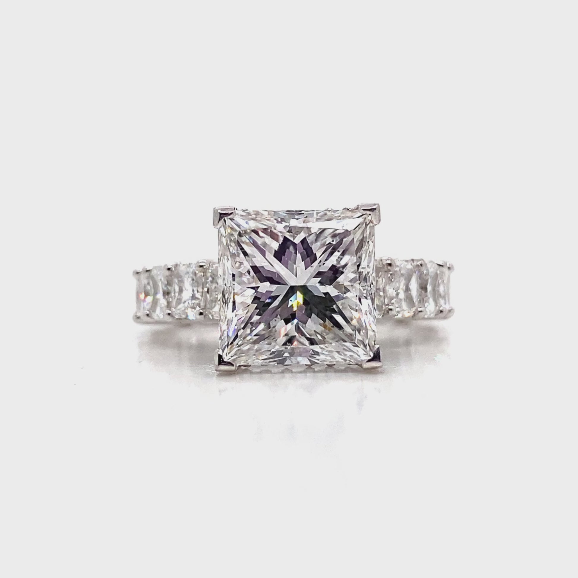 Introducing The Karen — a bold and sophisticated custom engagement ring that radiates timeless elegance. At the heart of this striking design is a 4.00-carat natural princess-cut diamond, known for its sharp lines and exceptional brilliance. The band is beautifully adorned with an additional 1.35 carats of natural round and princess-cut diamonds, creating a seamless eternity-style shimmer that enhances the grandeur of the center stone. The Karen is a powerful expression of love, luxury, and enduring style.