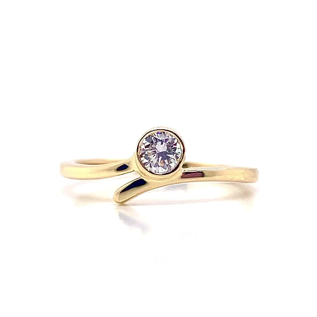 Introducing The Kathy — a beautifully understated custom-designed ring that celebrates minimalist elegance. Handcrafted in warm 14K yellow gold, this piece features a bezel-set round brilliant diamond that appears to float effortlessly between the gracefully curved split band. Designed to showcase the customer’s own center stone, The Kathy reflects refined simplicity and thoughtful design, making it the perfect everyday statement of personal style.
