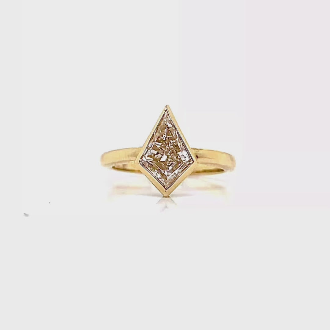 Unapologetically sleek and distinct, The Taylor is a modern masterpiece that celebrates bold individuality. Set in polished 14K yellow gold, this ring features a mesmerizing 2-carat lab-grown kite-shaped diamond, bezel-set to showcase its architectural geometry and exceptional sparkle. The clean lines and unique silhouette make it a perfect choice for those who embrace both elegance and edge.